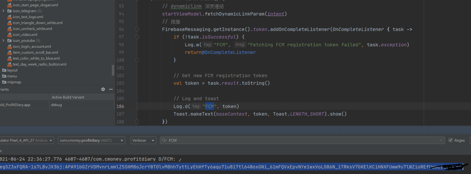 依照指示在在專案中加入程式碼,就會log出來,再將長長的一串憑證貼上去即可