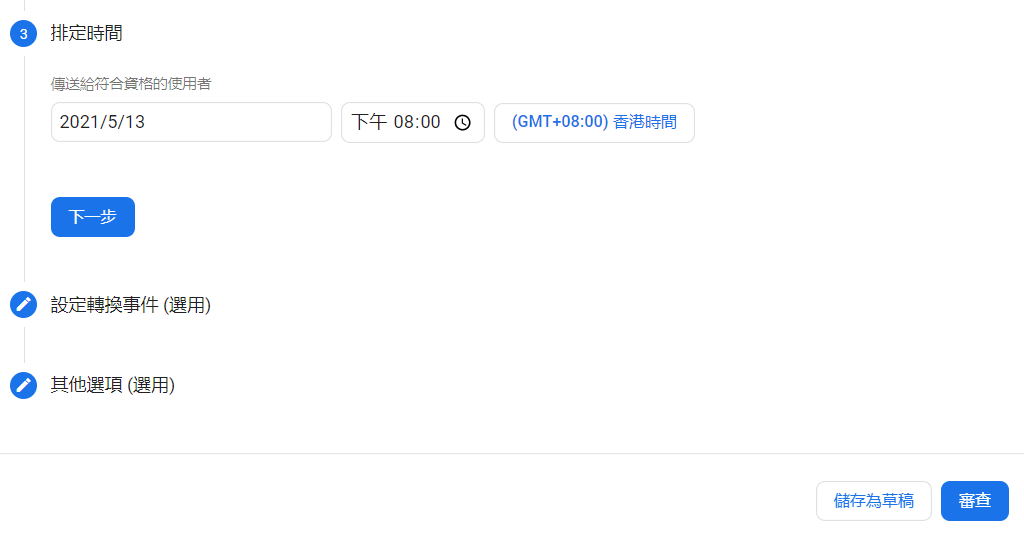 輸入排定的時間,點審查,就完成啦,是不是很簡單 p.s.審查一旦點下去,就會按照排定時間直接送出喔! 可以先儲存草稿