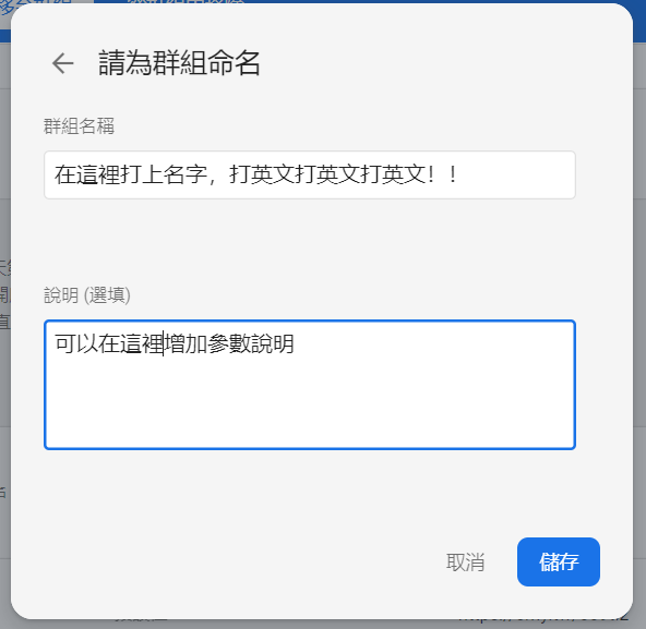 可以點擊左下方新增說明,將參數內容表示的意義放在上面方便其他人理解(可設可不設)