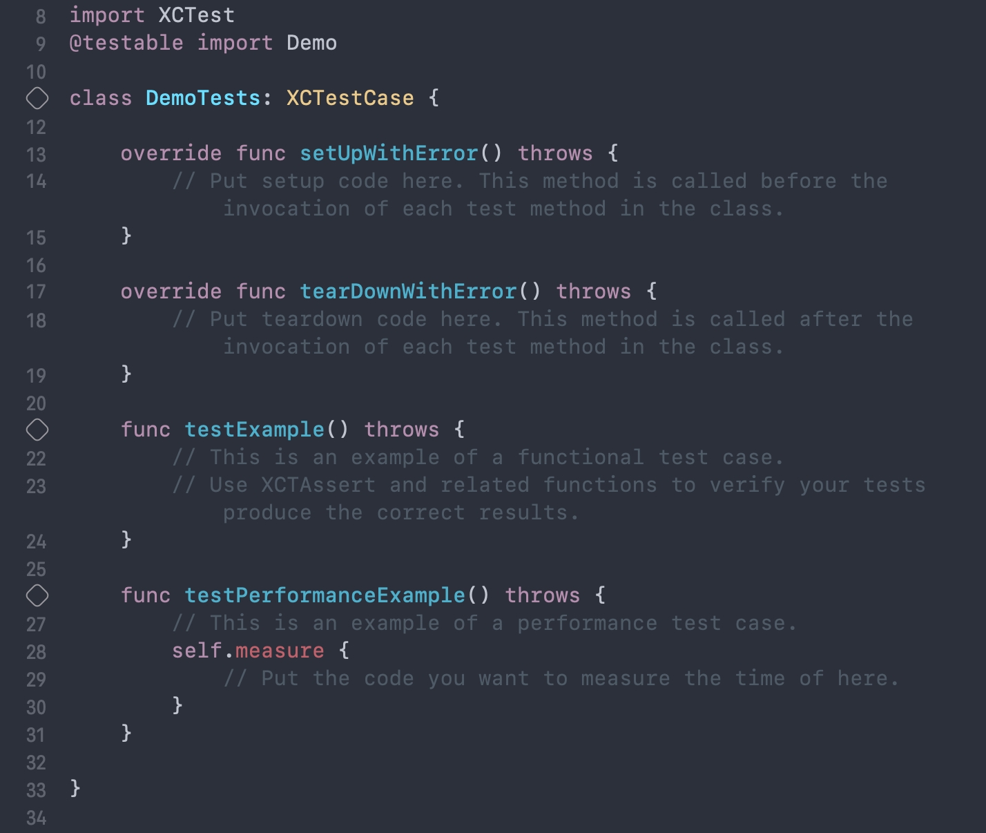 class SetUpAndTearDownExampleTestCase: XCTestCase {