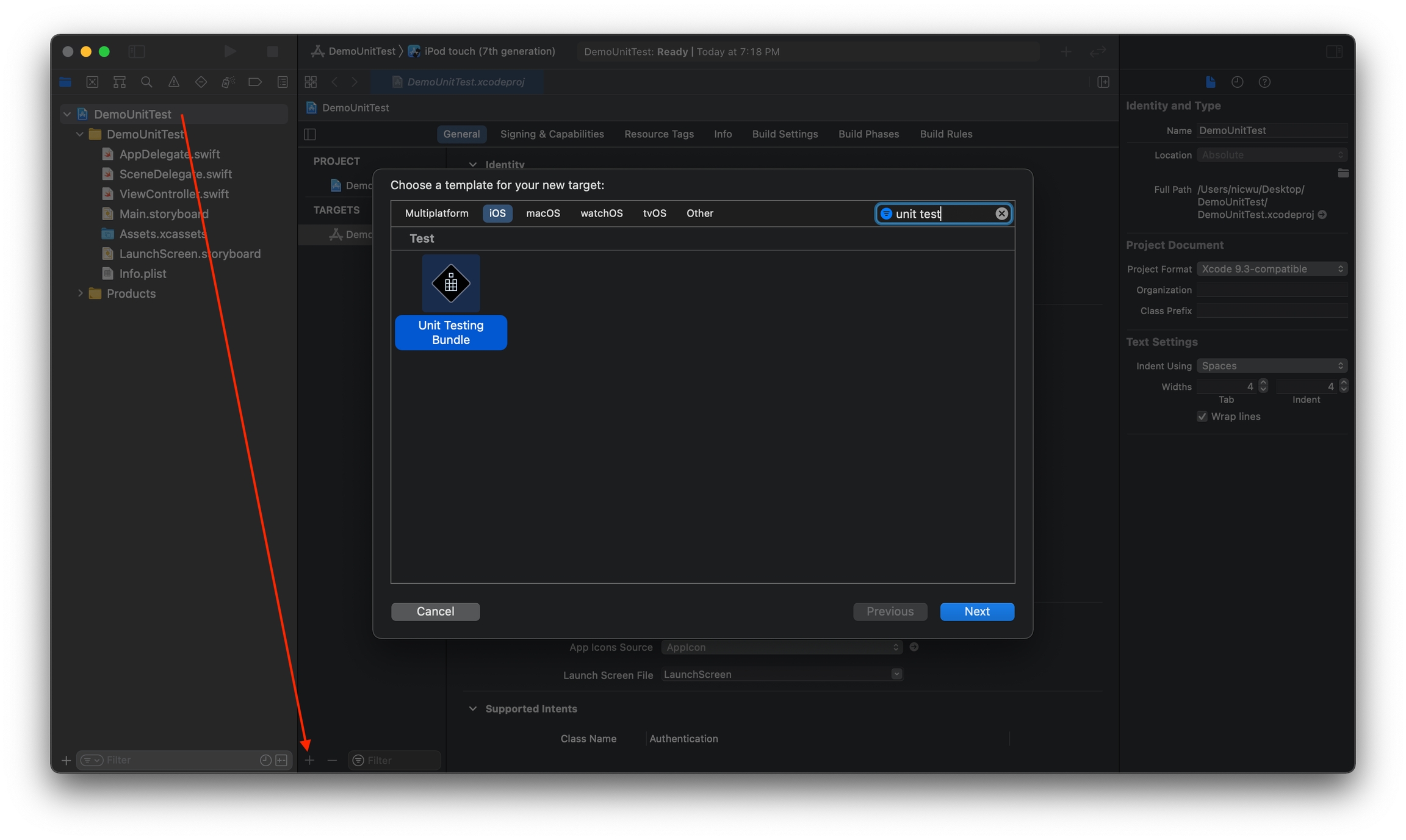 但若在上述步驟忘了勾選,或是後來才決定要加入 Unit Tests,則也可以透過手動新增Unit Tests 的 Target(圖2)。