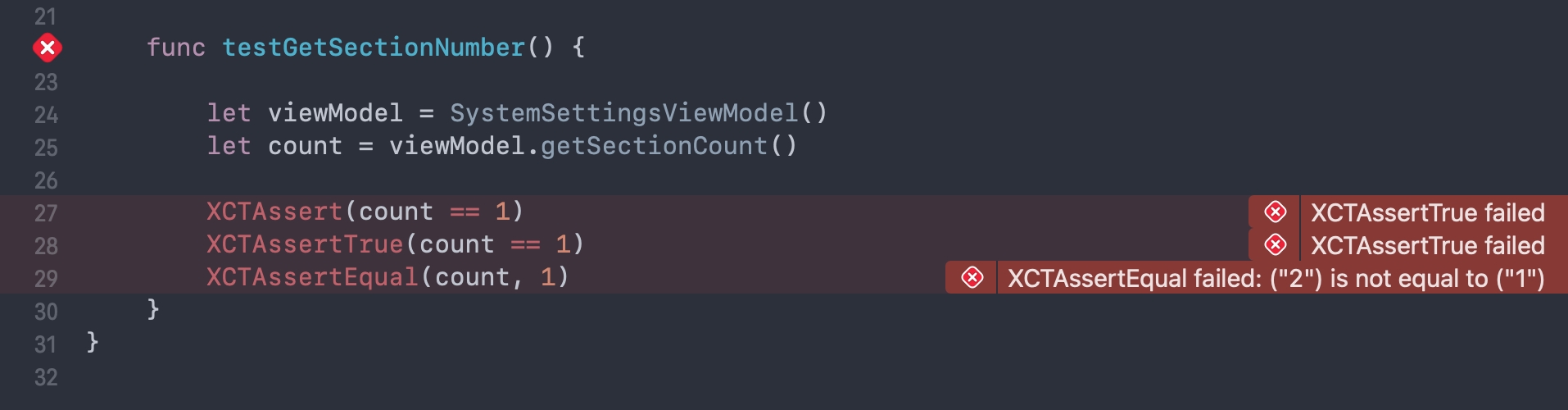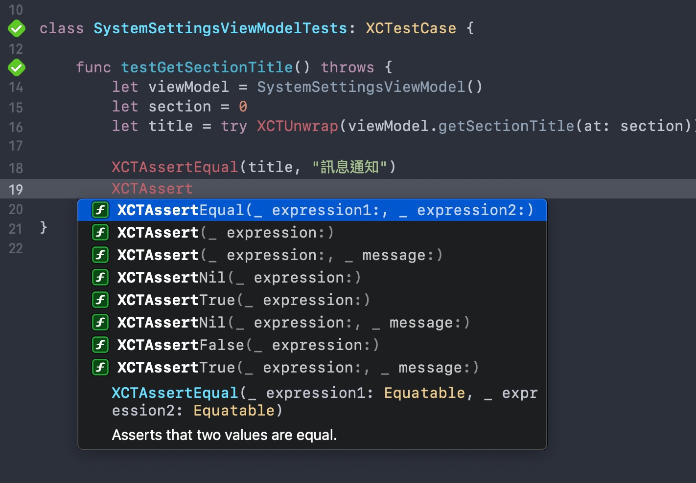 測試方法也可以也可以拋出錯誤,只要被測試的方法中拋出錯誤,就可以使用合適的XCTAssert來驗證。