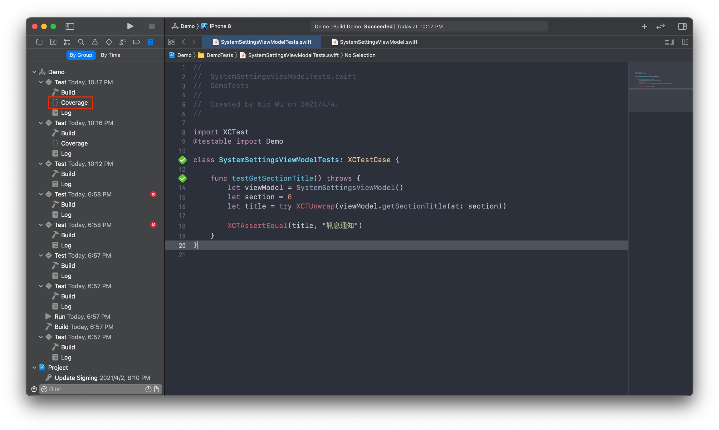 2. 對 API 做異步測試:使用 XCTestExpectation(這算是整合測試,不是單元測試)